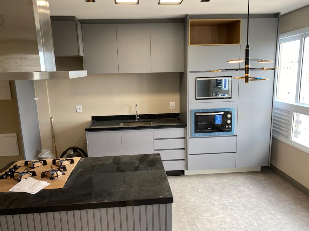 Apartamento com 70m², sendo 2 quartos com suítes, sala 02 ambientes, completo em armários planejados, cozinha com coifa e cooktop e área de serviço com banheiro.