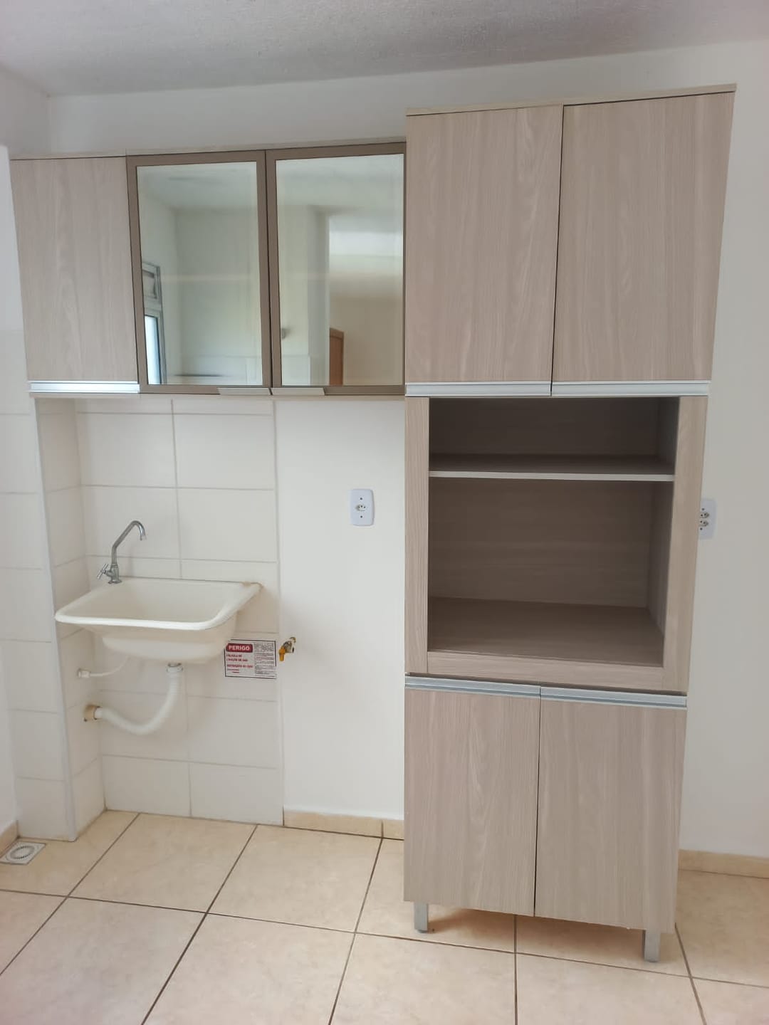 Apartamento possui 42m², com 2 dormitórios, sala 2 ambientes, 1 banheiro, 1 vaga de garagem, cozinha e lavanderia integradas.