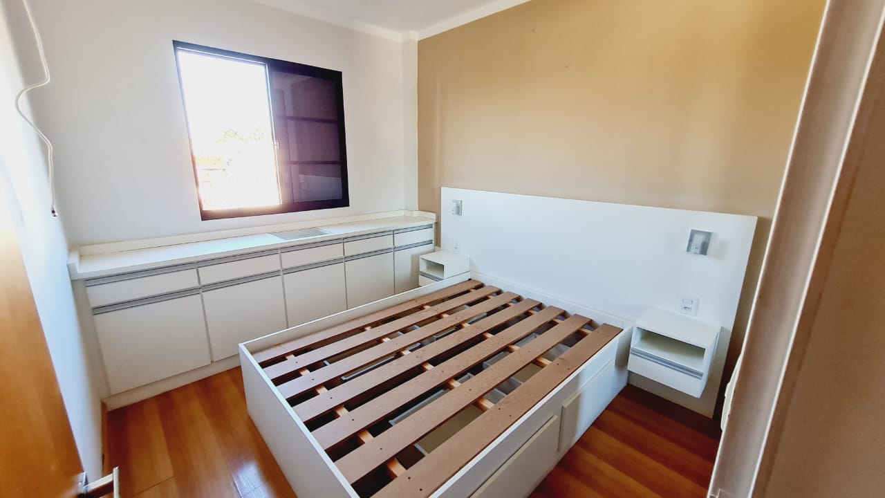 O apartamento está todo reformado com sanca, pisos laminados e completo em armários.