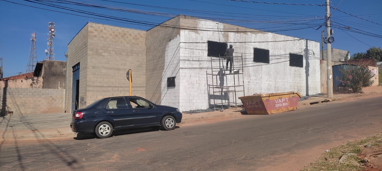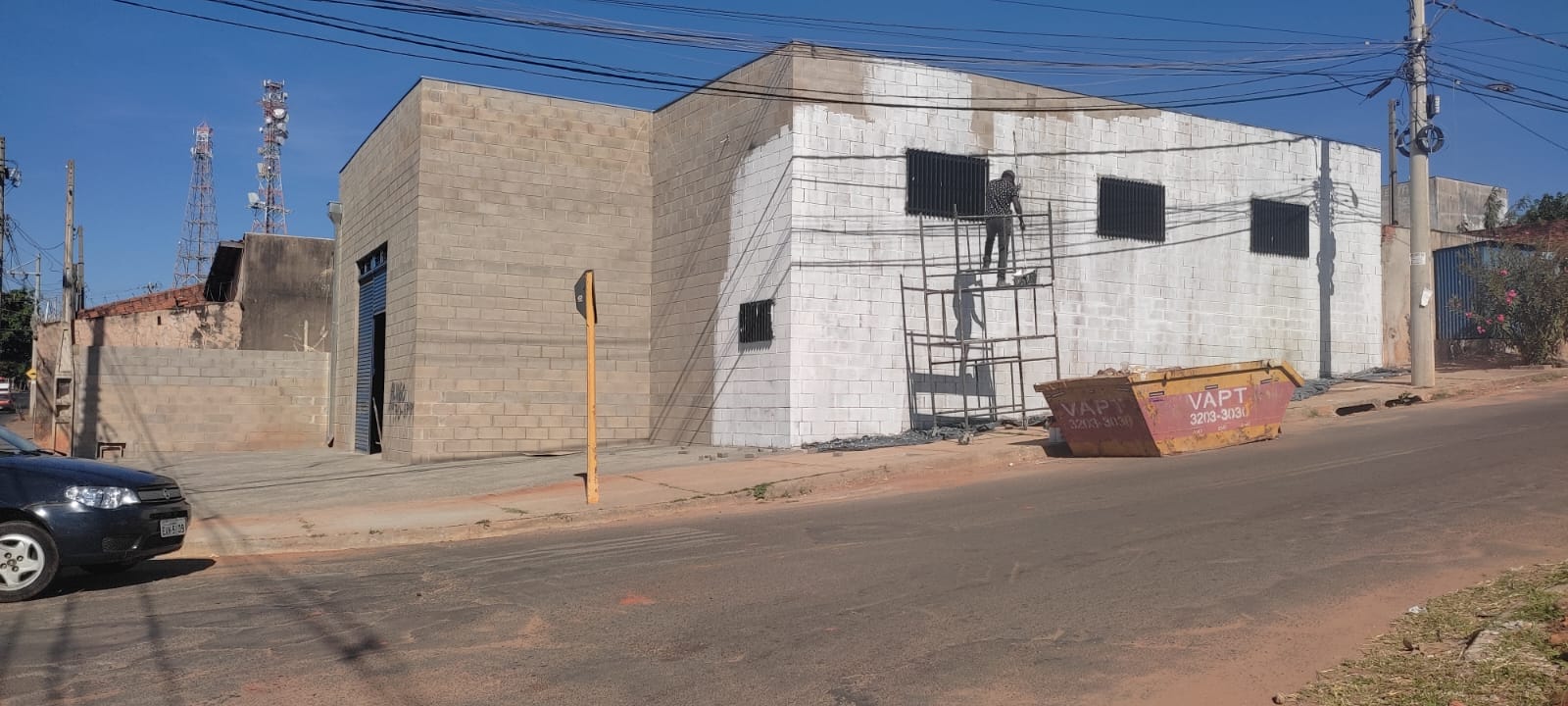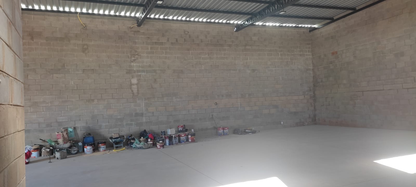 O Barracão está pronto e possui 01 Banheiro e estacionamento frontal para 04 carros.