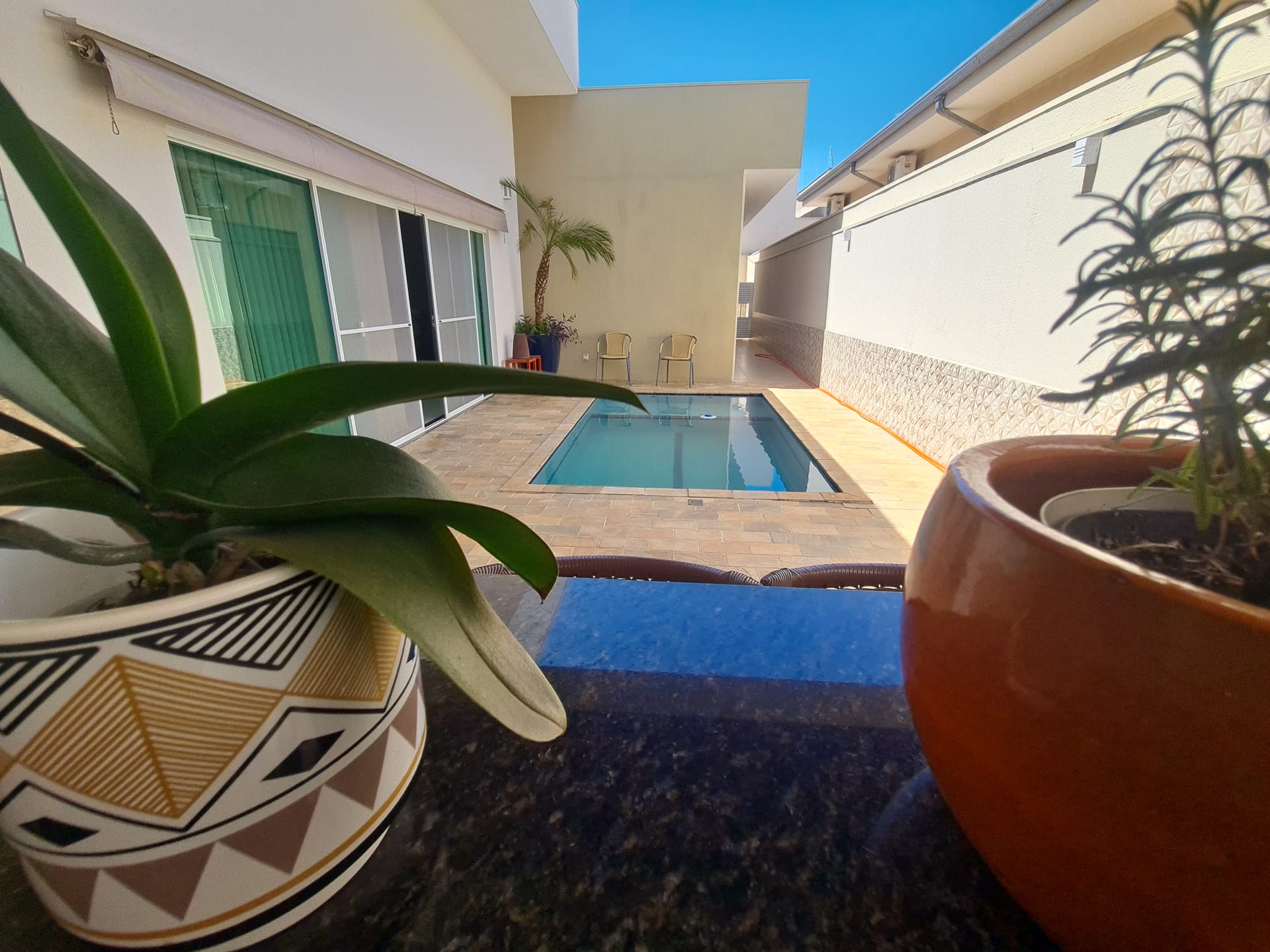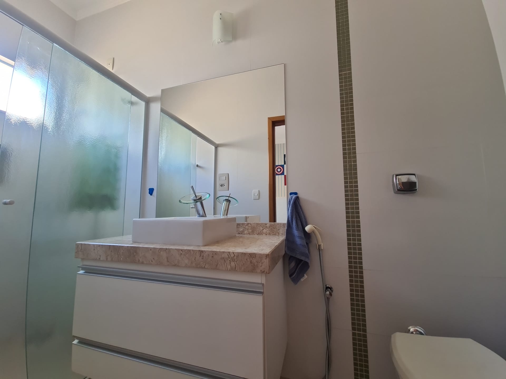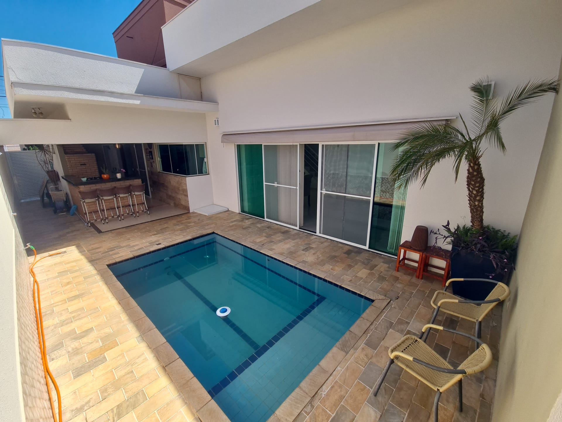 Casa no condomínio Quinta Ranieri Green, totalmente climatizada, com 03 Suítes completas em armários, sendo uma master com closet e banheira com hidromassagem, Lavabo na entrada, Sala para 2 ambientes, Escritório completo com armários planejados que pode converter em cinehome, com lavabo, Cozinha totalmente equipada com armários, fogão coocktop, forno elétrico, lava louças e coifa, Área de lazer com Piscina aquecida, fogão coocktop, churrasqueira e forno à lenha, Despensa ampla e banheiro, todas as torneiras com água aquecida.